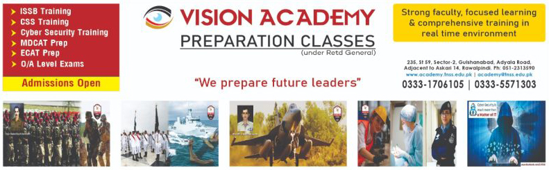 At Vision Academy, preparation for ISSB is our strongest programme with exceptionally competent and well experience senior retired military officers. We have five weeks hands-on practical and focused training, Our average pass percentage is near 75-80%.